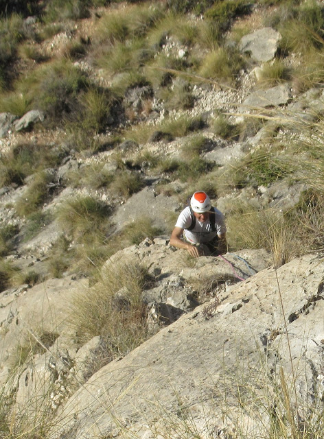 Hoy volvemos al Peñón del Divino, una pared preciosa y con un ambiente especial, el paisaje espectacular y el silencio absoluto... solo roto en algún momento por algún senderista de los que pasan por pie de pared y sin querer desplaza algún guijarro de los empinados senderos...