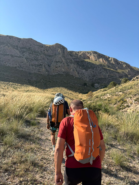 Hoy volvemos de nuevo a las paredes del Buey, para hacer una de las ultimas restauraciones en el sector del Dolmen, concreta mente en la vía "Mar Antiguo" 6b/Ao / 240m. Esta se encuentra justo a la izquierda de la vía "Lluvia Purpura" y me acompañan para hacerla Castaño y el papi de la vía JM que se a pegado un curro de la ostia... Hoy hemos venido por la tarde buscando la sombra, que por cierto, se esta en la gloria y incluso hemos hecho media aproximación también en sombra. El amigo Castaño se ha traído el parapente, para ver de despegar justo cuando terminemos la vía. Descargar el croquis "Aquí".